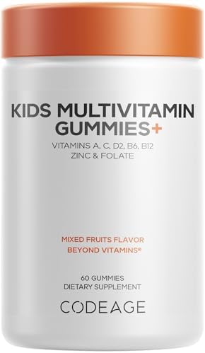 Codeage Kids Multivitamin Gummies Supplement – Vitamins A, C, D2, B6, B12, Zinc, Folate, Iodine – 2-Month Supply Children’s Vitamins – Non-GMO, Gluten-Free, Dairy-Free – Mixed Fruits – 60 Gummies