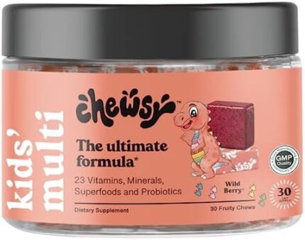 Chewsy Kids’ Multivitamin, Delicious Candy-Style Daily Vitamin Chews + Probiotics + Superfoods, Wild Berry Flavor Chewable Fruity Supplement Chews, Individually Wrapped, Easy to Enjoy, 30-Day Supply