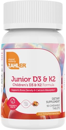 Zahler – Junior Vitamin D3 + K2 Chewable Tablets for Kids| Vitamin D for Kids 2000 IU | Delicious Vitamin D K2 Chews to Support Healthy Bones & Teeth – Kosher, Less Sugar Than Gummies (90 Count)