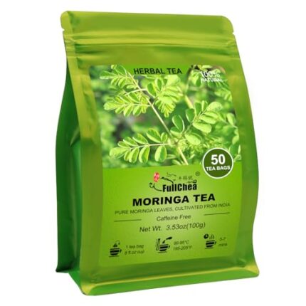 FullChea – Moringa Tea, 50 Teabags – Pure & Natural Moringa Leaves, Cultivated From India – Herbal Tea for Supporting Digestion & Immune System – Non-GMO – Caffeine-free