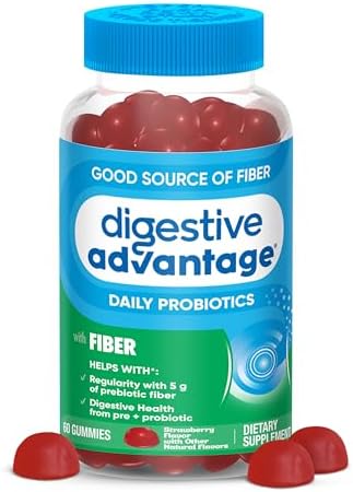 Digestive Advantage Prebiotic Fiber Gummies + Probiotics for Gut Health, 5g Prebiotic Fiber Plus 1 Billion CFU Probiotic, Supports Digestive Health & Regularity, (60ct Bottle) Strawberry Flavor