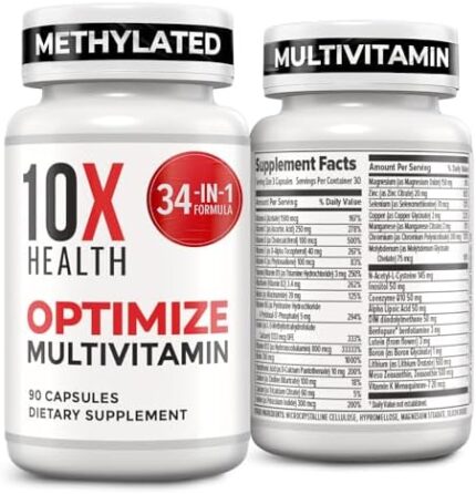 10X Health Optimize Multivitamin for Men – 90 Capsules, Methylated Multivitamin 34 in 1 Formula with 800 mcg of Vitamin B12, 5-MTHF, NAC – Methyl B Complex, MTHFR Supplement