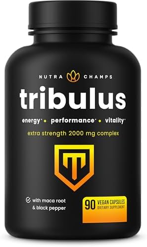 NutraChamps Tribulus Terrestris for Men, 2000mg Supplement Booster for Energy, Vitality, Stamina & Performance, Extra Strength Saponins, 90 Vegan Capsules