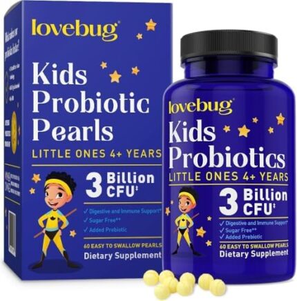 LOVEBUG Probiotics for Kids – Kids Probiotic Chewables with Prebiotics for Aged 4+, Daily Children’s Gut Health, Constipation, Digestive & Immune Support Supplement, Sugar-Free, 60 Soft Pearls