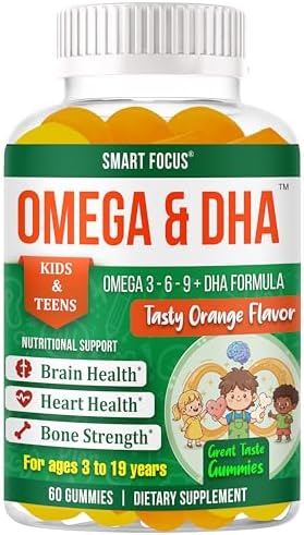 SmartKids Kids Focus Gummies with Omega 3 DHA – Brain, Memory & Attention Support – Children’s Omega 3 6 9 Chewable Gummy Vitamins, Lemon & Orange Flavor, 60 Count
