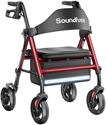 Rollator Walkers with Seat for Seniors, Foldable 8″ Big Wheels All Terrain Rolling Walker, Handles and Ergonomic Seat Height Adjustable, 350lb Weight Capacity