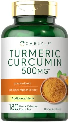Carlyle Turmeric Curcumin Supplement 500 mg | 180 Capsules | with Black Pepper Extract | Non-GMO & Gluten Free