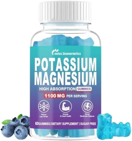 Potassium Citrate 1100mg Gummies, Potassium Supplement for Adults Women & Men, Potassium Magnesium Gummies for Supports Leg Cramps & Muscle Health – Gluten Free, Sugar Free – Blueberry Flavor 60 Count