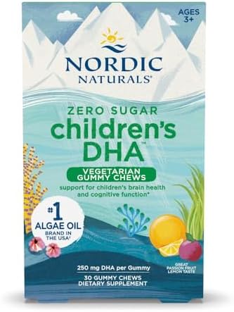 Nordic Naturals Zero Sugar Children’s DHA Vegetarian Gummy Chews – Passion Fruit Lemon Flavor – 30 Gummies – Vegan Algae Oil Omega-3 Supplement for Kids Brain & Cognition Support – 30 Servings