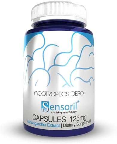 Nootropics Depot Sensoril Ashwagandha Capsules | 125mg | 180 Ct. | Ayurveda Supplement | Standardized Withania somnifera Extract | to Support Healthy Energy, Mental Cognition + Cardiovascular Health