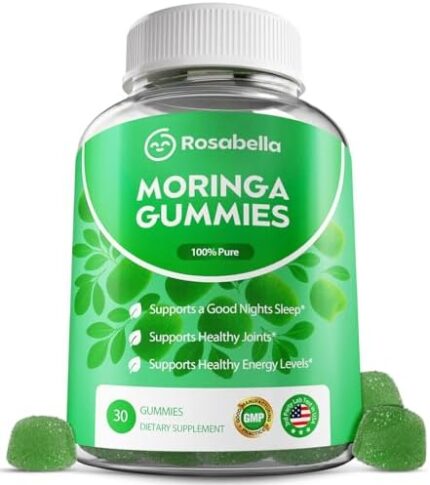 Rosabella Moringa Gummies – Moringa Leaf Extract 1000mg Equivalent Per Serving – Natural Energy & Balance – Non-GMO, Gluten-Free Superfood Gummies for Women & Men – 30 Count