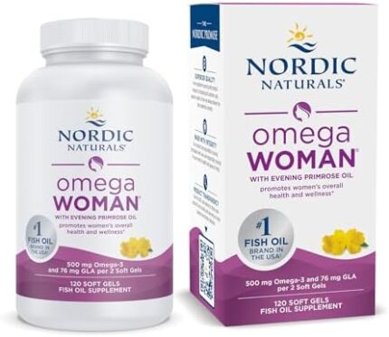 Nordic Naturals Omega Woman, Lemon – 120 Soft Gels – 500 mg Omega-3 + 800 mg Evening Primrose Oil – Healthy Skin & Optimal Wellness – Non-GMO – 60 Servings