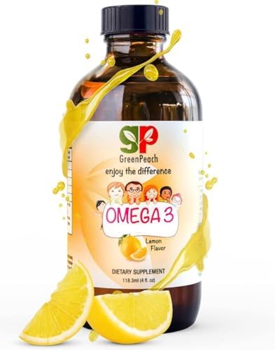 GreenPeach Omega 3 for Kids – 4oz Lemon Flavor Liquid Supplement, 525mg Toddler DHA & 800mg EPA, Natural Formula Kids Fish Oil