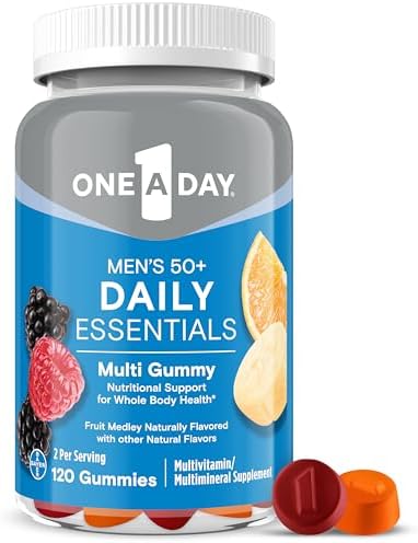 One A Day Men’s 50+ Daily Essentials Multivitamin Gummies, Multivitamin for Men Over 50, Fruit Medley Flavor, 120 Gummies