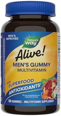 Nature’s Way Alive! Men’s Multivitamin Gummies, Supports Energy Metabolism*, Muscle Function*, Superfood Antioxidants(1), B-Vitamins, Vegetarian, Fruit Flavored, 60 Gummies (Packaging May Vary)