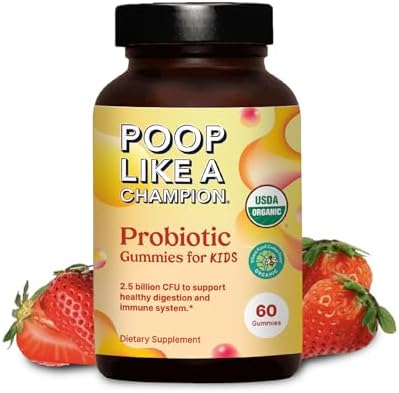 Poop Like a Champion Probiotic Gummies for Kids – USDA Organic, Vegan, Non-GMO, Gentle Digestive Health Support, 60 Gummies