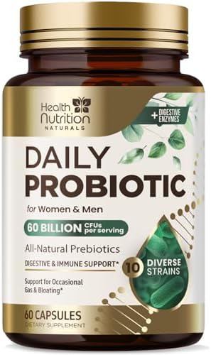 Probiotics 60 Billion CFU + 10 Strains – Daily Probiotic Lactobacillus Blend for Immune, Digestive & Gut Health Support, Prebiotics and Probiotics, Gas & Bloating for Women & Men – 60 Capsules