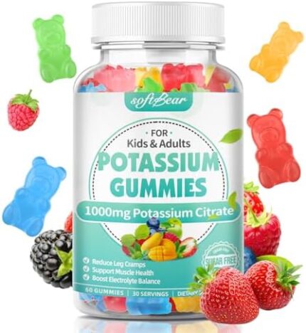 softbear Potassium Citrate Gummies, High Potency Potassium Citrate 1000mg Supports Leg Cramps & Muscle Health Potassium Gummies for Adults & Kids Mixed Fruit Flavor 60 Count