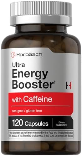 Horbäach Energy Supplement | 120 Capsules | with Caffeine, Ginseng & Vitamin B12 | Daily Energy Booster Pills | Non-GMO, Gluten Free