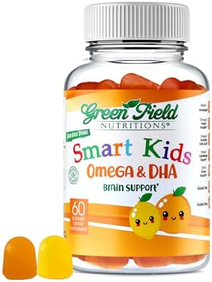 Greenfield Nutritions Smart Kids Halal Omega 3 Gummies with DHA – 60 Halal Vitamins for Kids, Supports Brain & Immune Health – Vegan, Non-GMO, Gluten, Gelatin-Free and Peanut-Free Halal Gummy Vitamins
