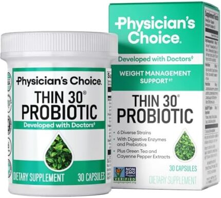 Physician’s CHOICE Probiotics for Weight Management & Bloating – 6 Probiotic Strains – Prebiotics – Key ingredient Cayenne – Supports Gut Health – Weight Management for Women & Men – Green Tea – 30 CT