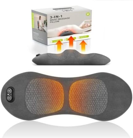 3 in 1 Upadate Rechargeable Electric Lumbar Support Pillow with Adjustable Height for Bed and Chair,Back Massager with Heat,Back Massager for Pain Relief Deep Tissue,Waist Wedge Bolster (Black)