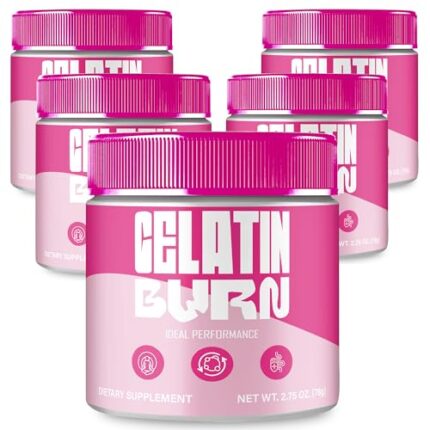 Gelatin Burn Powder, Official GelatinBurn Advanced Formula Powder Supplement – Maximum Strength, All Natural Wellness Energy Support Recovery & Fitness Boosting, Premium Gelatin Burn Reviews (5 Pack)