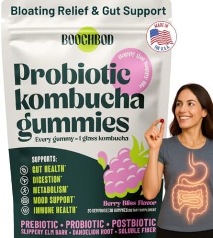 Probiotic Kombucha Gummy – Prebiotics, Probiotics, Postbiotics, Fiber Supplement, Slippery Elm, Dandelion Root, MCT Oil, for Bloating, Gut Health – Probiotics for Women and Men