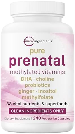 Pure Methylated Prenatal Vitamins for Women, 240 Veggie Capsules | 38-in-1 with DHA, Choline, Probiotics, Manganese, Inositol, & Vitamin A, C, D, B Complex + Methylfolate, & Iron | No Fillers