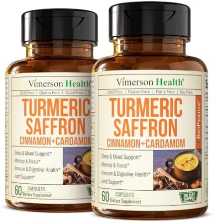 Saffron Supplements – 89mg Saffron Extract and 1000mg Tumeric Blend – Turmeric Supplement with Ceylon Cinnamon and Cardamom for Mood, Memory & Eye Health – Joint Supplements for Women & Men – 2 Pack
