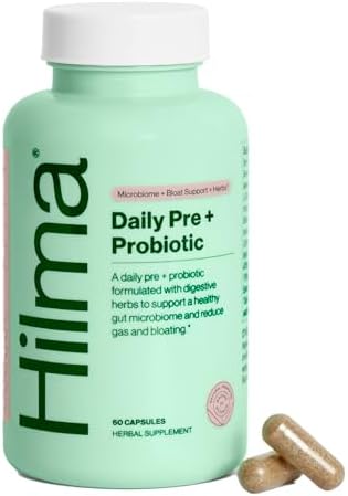 Hilma Pre and Probiotic with Herbs – Support Gut Health with Prebiotics and Probiotics, Plus Gas and Bloating Relief for Women & Men, 60 Vegan Capsules