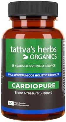 Tattva’s Herbs Cardiopure Herbal Ayurvedic Supplement, Ashwagandha, Rauwolfia, & Arjuna Full Spectrum Co2 Extracts, Veggie Capsules, 60 Count
