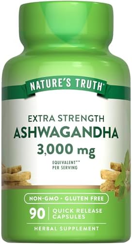 Nature’s Truth Ashwagandha Capsules | 3000mg | 90 Count | Extra Strength | with Black Pepper | Non-GMO & Gluten Free Supplement