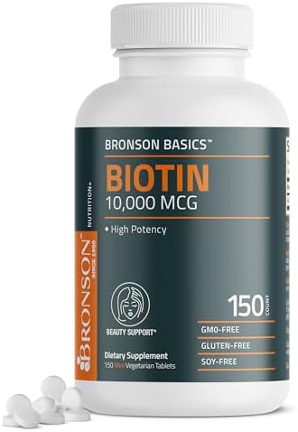 Bronson Biotin 10,000mcg, Supports Healthy Hair, Skin and Nails, Vegetarian, Non-GMO, 150 Tablets