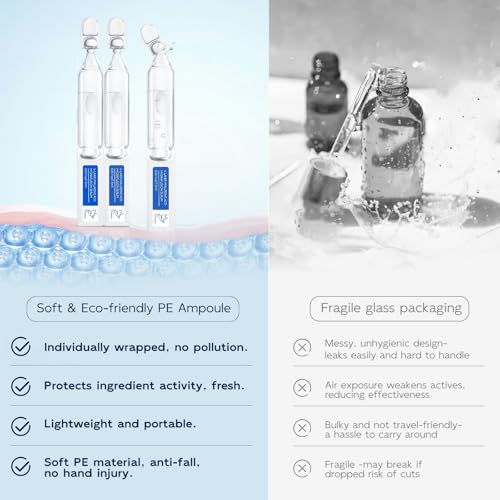 Air-Tight Single-Use Tubes – Freshness Guaranteed:Each 1.5ml sterile tube (vs. traditional pumps that oxidize!) protects actives like peptides and HA. Throw in gym bags or carry-on luggage – no leaks, no contamination.