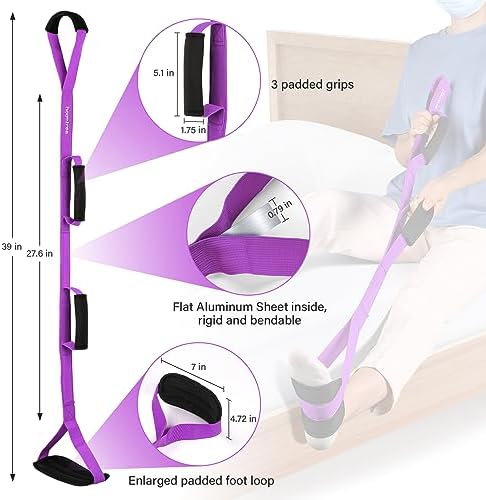 Home Disability Appliances Mobility Aids 39” Long Leg Lifter Strap with Padded Handgrips and Feet Loop,Rigid Leg Lifter Hip&Knee Replacement Surgery Recovery Kit,Mobility Aids Foot Lifter Easily Get in and Out of Bed,Car,Wheelchair