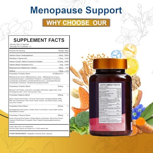Formulated without dairy, soy, gluten, or artificial additives. Manufactured in a GMP-certified facility in the USA. Each bottle contains 120 vegan capsules, providing a 60-day supply of complete menopause support.