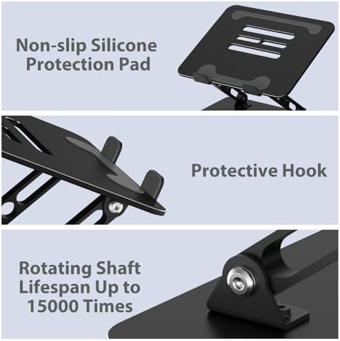 【Sturdy & Protective】 :Made of sturdy metal, it can support up to 17.6 lbs (8kg) weight on top; With 2 rubber mats on the hook and anti-skid silicone pads on top & bottom, it can secure your laptop in place and maximum protect your device from scratches and sliding. Moreover, smooth edges will never hurt your hands.