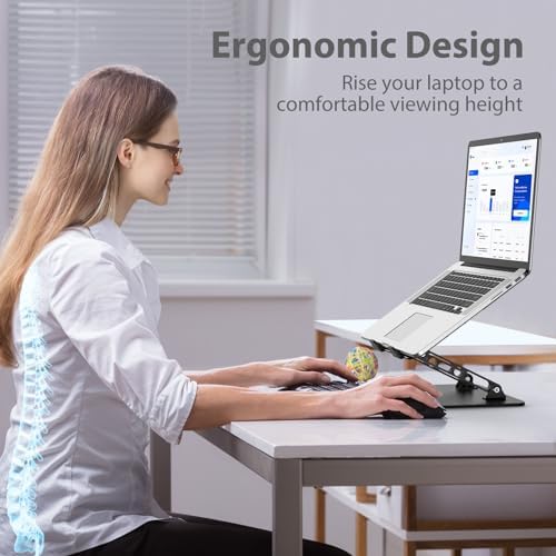 【Adjustable & Ergonomic】:This laptop stand can be adjusted to a comfortable height and angle according to your actual needs, letting you fix posture and reduce your neck fatigue, back pain and eye strain. Very comfortable for working in home, office and outdoor.