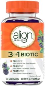 THE PROBIOTIC BRAND DOCTORS RECOMMEND MOST.‡ Recommended by Gastroenterologists two times more than any other probiotic brand, Align is the #1 doctor and gastroenterologist recommended probiotic brand‡. Align Probiotic 3-in-1 Biotic Gummies contain prebiotics to help nourish your good bacteria*, probiotics to help relieve occasional bloating*, and postbiotics to help support immune health.* Align Probiotic 3-in-1 Biotic Gummies are vegetarian, gluten-free, and do not require refrigeration. ‡Among Doctors and Gastroenterologists who recommended a brand of probiotic in ProVoice 2024 survey.