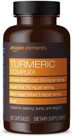 Home Natural and Herbal wellness Turmeric Amazon Elements Turmeric Complex, 316 mg Curcumin with Ginger and Black Pepper, Joint & Immune Support, 65 Capsules