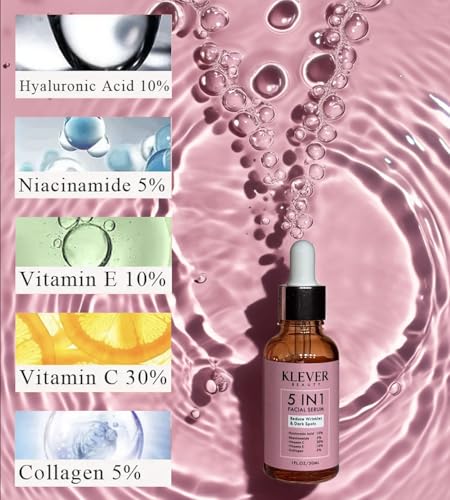 POWERFUL FORMULA: 5-in-1 facial serum combines Hyaluronic Acid, Niacinamide, Vitamin C, Vitamin E, and Collagen for comprehensive skincare benefits