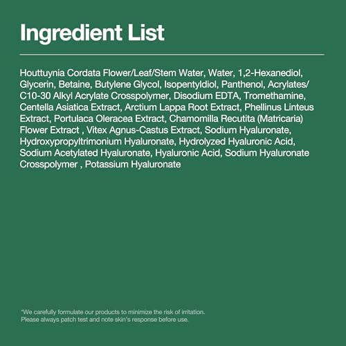FORMULATED WITH NATURAL INGREDIENTS : Contains 77% Heartleaf Extract grown and haversted in Korea. Cruely free, Vegan, Paraben Free.