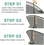 EASY TO INSTALL: Just lower your window and put the strap around the highest point of the window outline. Snap the buckle in place then adjust the height of the strap.