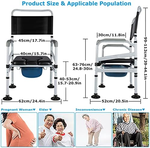 【Multipurpose Use】This toilet can be used as a toilet safety frame, raised toilet seat, bedside toilet, shower seat. Suitable for the elderly, pregnant women, people with disabilities or those who need care.