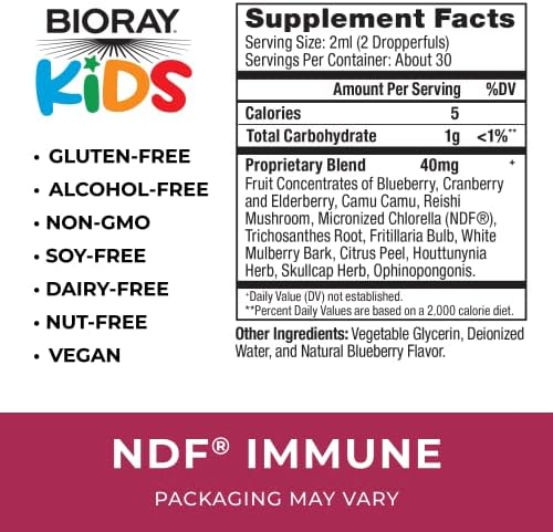 IMMUNE SUPPORT – BIORAY Kids NDF Immune safely supports a child’s response to seasonal and immune issues with naturally occurring antioxidants, adaptogenic herbs, vitamins, minerals, and chlorella.