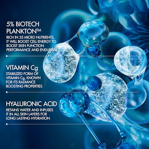 Powered by 5% Biotech Plankton to reduce wrinkles and boost elasticity, Vitamin Cg contributing to smoother and more even skin and Hyaluronic Acid for long lasting skin hydration.