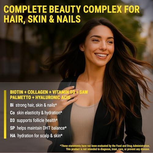 Biotin | Collagen | Keratin Booster with Hyaluronic Acid – Thicker Hair Growth, Healthy Skin & Stronger Nails Supplement – Extra Strength – Multi Vitamin B Complex – Women & Men – Made in USA – 60ct