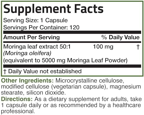 Home Natural and Herbal wellness Moringa Bronson Moringa Extra Strength Capsules Moringa Oleifera Powder, 120 Count