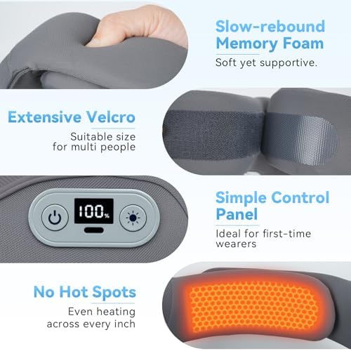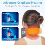 𝗙𝗮𝘀𝘁 𝗚𝗿𝗮𝗽𝗵𝗲𝗻𝗲 𝗛𝗲𝗮𝘁𝗶𝗻𝗴 – The built-in advanced graphene heating pad on the neck and back delivers approximately 113℉ of soothing warmth, heats up in just 3 seconds to quickly relieve coldness and stiffness in the neck, and helps alleviate neck pain and headaches